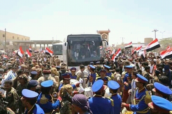 شاهد الاستقبال المهيب للمختطفين المفرج عنهم من سجون الحوثي