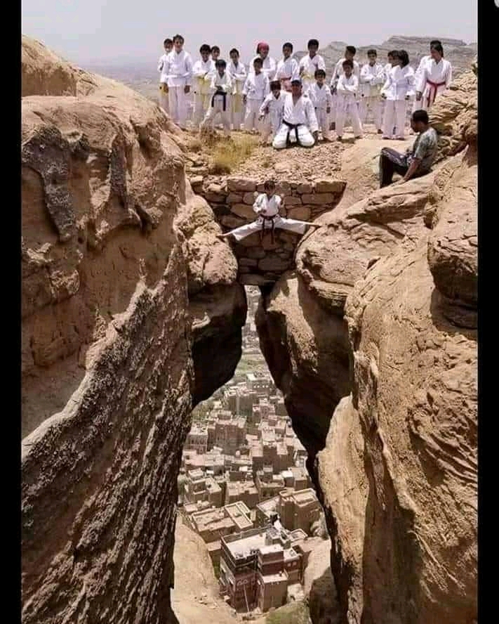 لطفل لم يتجاوز الثامنه..وقفه قتالية "خرافية" على أخطر منحدر جبلي شاهق.. شاهد...
