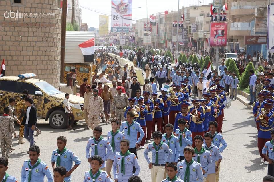 بالصور عرض كرنفالي بهيج بمدينة مأرب إحتفاءاً بذكرى ثورتي سبتمبر وأكتوبر
