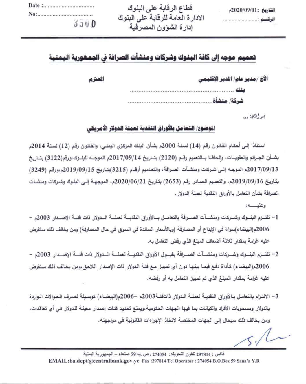 تعميم حوثي للبنوك ومحلات الصرافة وغرامات كبيرة فى حال المخالفة (وثيقة )