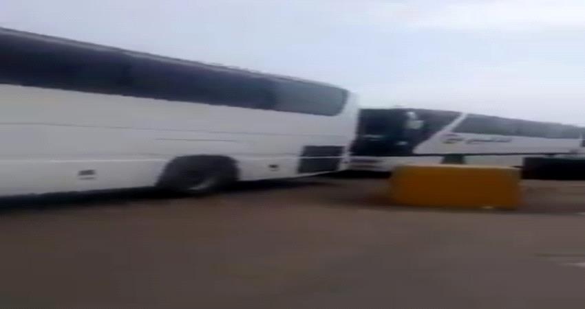 عاجل .. معتصمون يمنعون حافلات مجهولة من العبور الى مقر التحالف