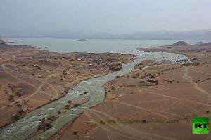 “فيديو” وصور جوية لفيضان سد مأرب