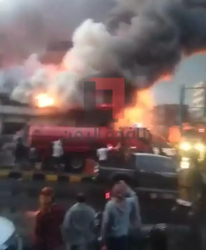 شاهد .. أعمدة دخان عملاقة تغطي سماء صنعاء والحرائق تنتشر بين المحلات