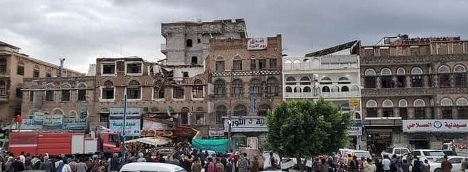 سقوط عمارة في العاصمة صنعاء بسبب غزارة الأمطار المستمرة منذ أيام (شاهد...