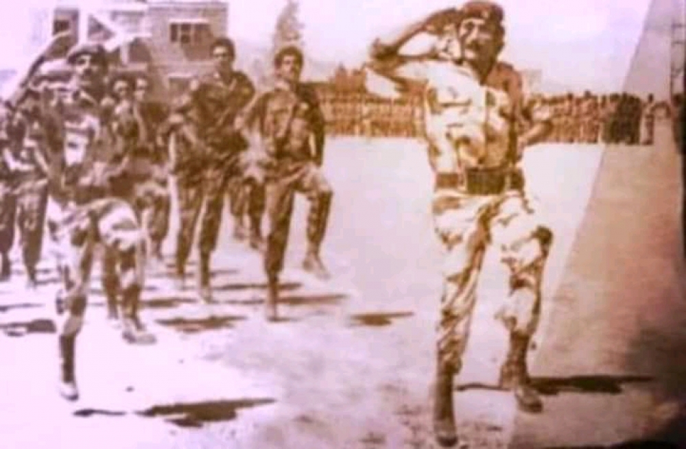 ناشطون يتداولون صورة للرئيس السابق وهو يقود عرض عسكري مهيب