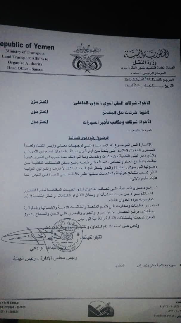 الحكومة اليمنية الشرعية ترد على شكوى شركات النقل البري الخاصة الواقعة تحت...