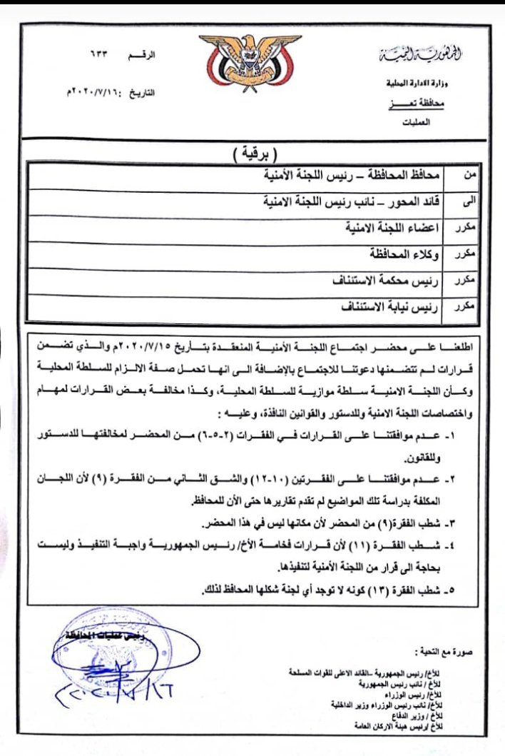 اللجنة الأمنية في تعز تقود إنقلاب واضح على الشرعية والمحافظ بإخراج فاشل...