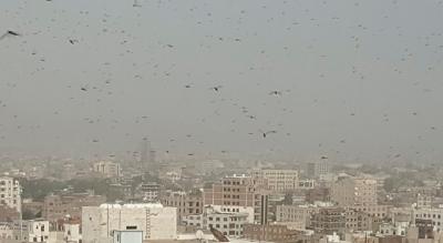 سماء صنعاء ملبدة بالجراد .. شاهد بالفيديو