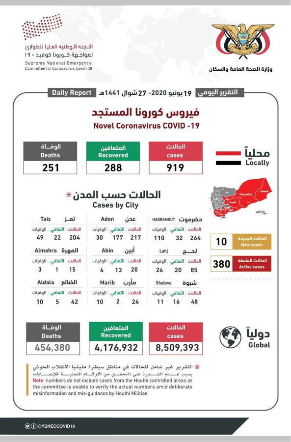 وزارة الصحة فى حكومة الشرعية تعلن عن إصابات كورونا جديدة اليوم الجمعة