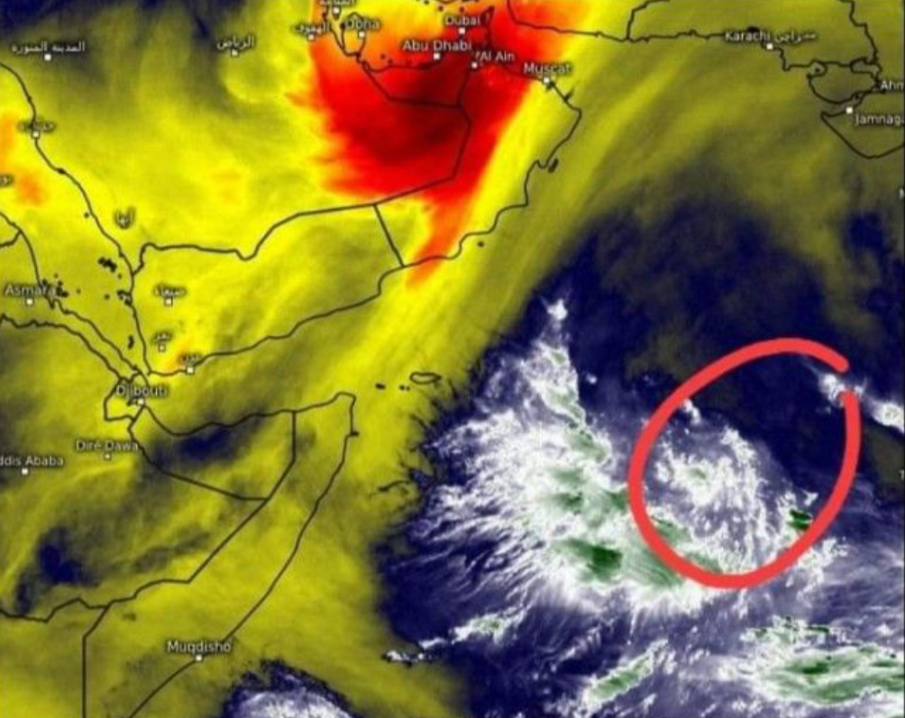 إقتراب المنخفض الجوي من سقطرى وإحتمالات من تحوله إلى إعصار مدمر (شاهد الصوره)