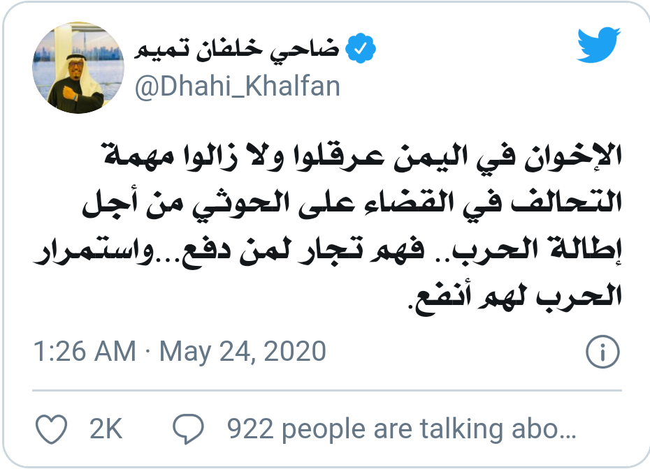 ضاحي خلفان: يفصح الذي عرقل مهمة التحالف في اليمن بالقضاء على الحوثي