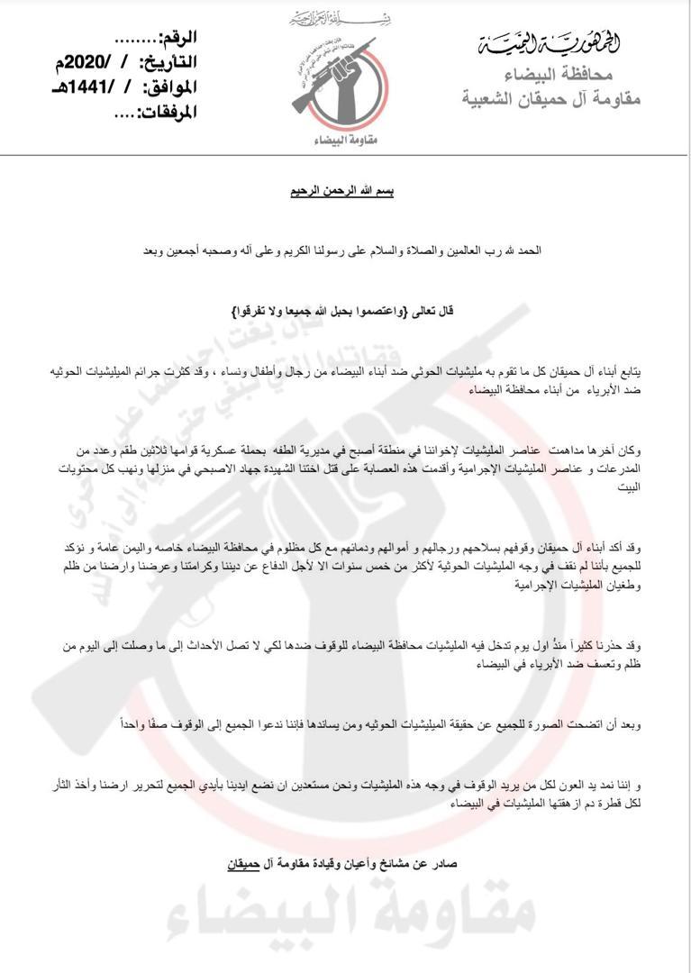 عاجل ... قرعت طبول الحرب بيان شديد اللهجة من قبيلة ال حميقان لجميع ابناء...