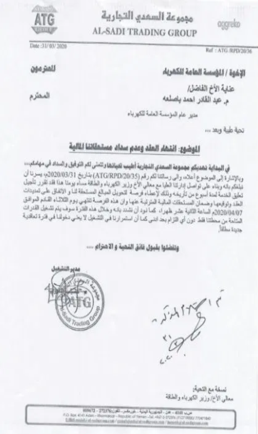 (وثائق) مجموعة السعدي توضح حول اضطرارها لإيقاف تشغيل محطتها ال60ميجا في...