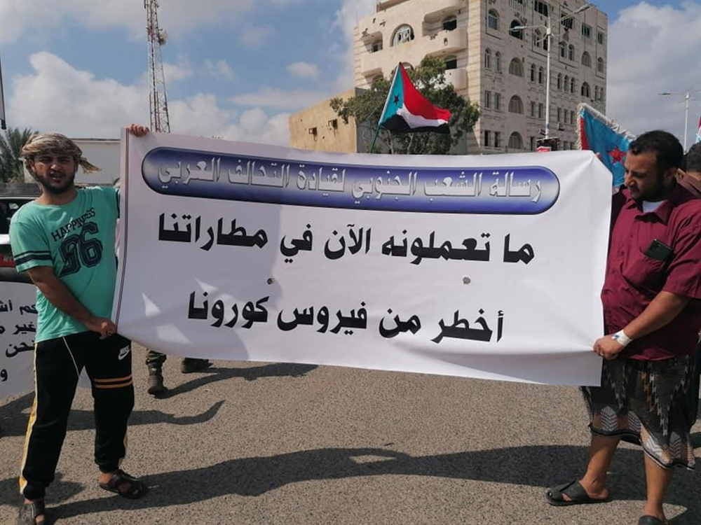 وقفة احتجاجية في عدن تنديدًا بتسيير رحلات خاصة بدول التحالف العربي إلى...