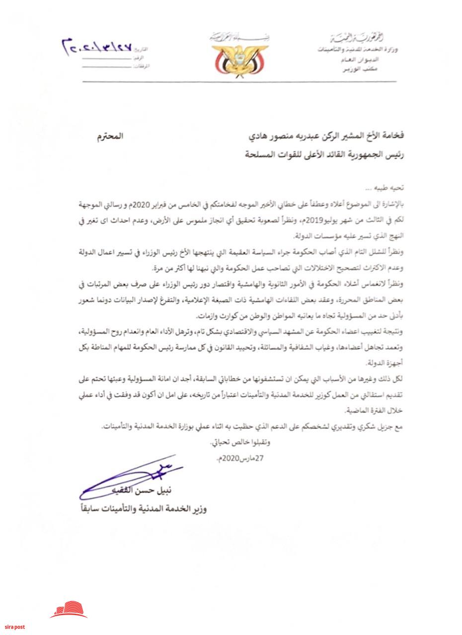 هل تقديم إستقاله بعض وزراء حكومة الشرعية تضامنآ مع وزير النقل او ان هناك خلل...