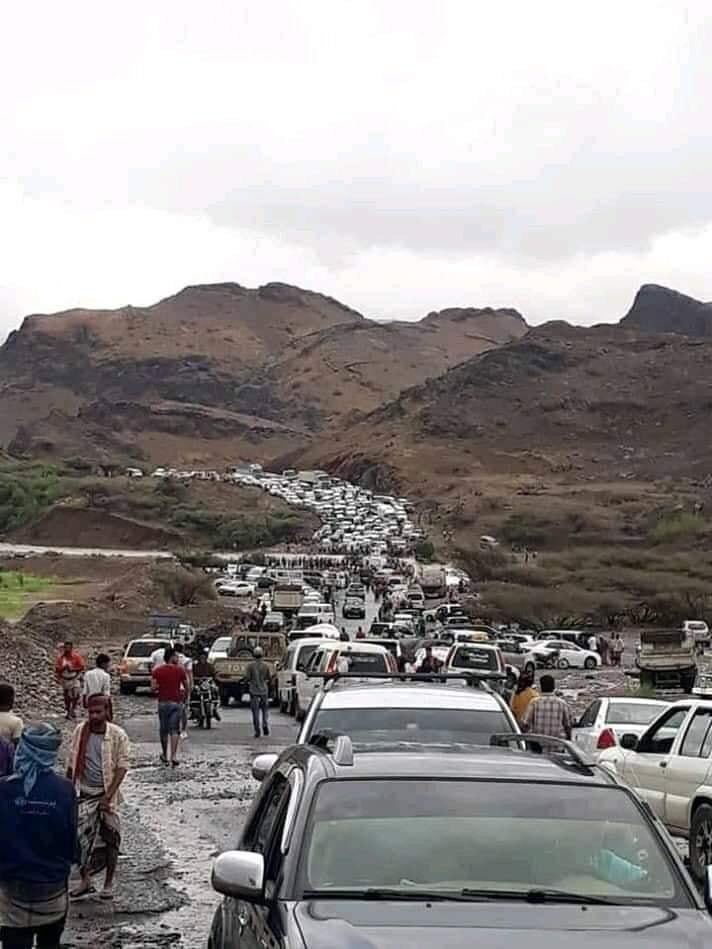 شاهد .. جماهير حاشدة تصل إلى «العند» قادمة من «عدن» .. وسياراتها تغلق خطوط...