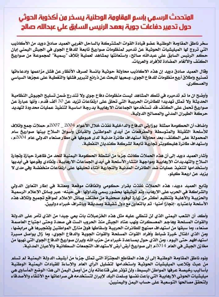 هل رضخ صالح لأمريكا وتخلص من أسلحة الدفاع الجوي كما ينشر الحوثيين ؟